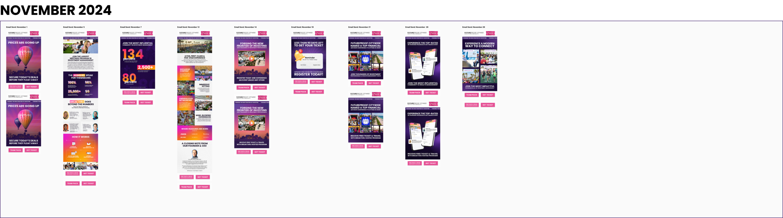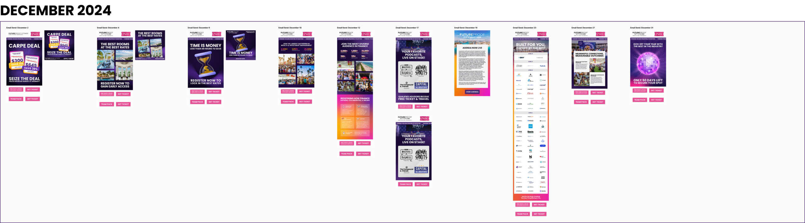 For Future Proof Citywide, I designed a series of email campaigns focused on driving awareness, registration, and engagement around the largest outdoor wealth management event in the industry. Each email balances clarity with visual energy, translating the Citywide brand into a digital experience that feels bold, accessible, and action-oriented while maintaining consistency across audience segments and touchpoints.